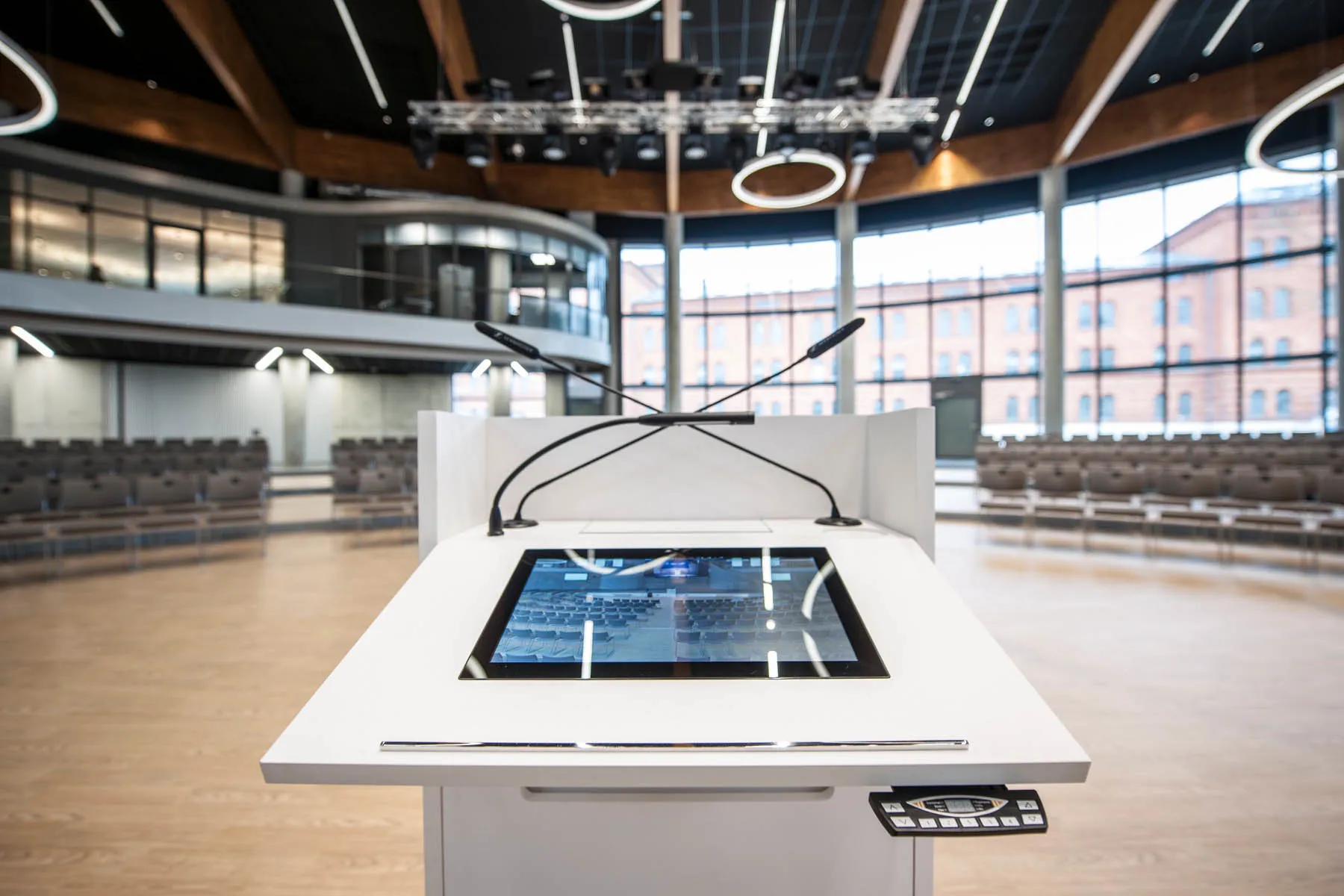 Kommunikation entfaltet Wirkung, wenn Medientechnik den Raum harmonisch trägt. Unsere Konferenztechnik macht Meetings mühelos und zielgerichtet: Touch-Steuerung für intuitive Bedienung, Kameras mit automatischer Sprecherverfolgung, kristallklare Audiotechnik und Displays, die jedes Detail brillant wiedergeben.